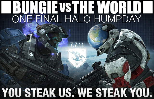2011: Bungie had allowed the community to turn on the Eternal Flaming Helmet and the Bungie nameplate, as well as adding the Bungie day playlist, in which the player received 777 credits from the slot machine for every game played. Bungie also hosted a Bungie vs. The World Steaktacular where the player had the opportunity to verse a team of Bungie employees and, if they scored a Steaktacular, Bungie would send them two steaks.[1]